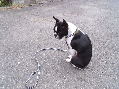 みいなちゃんの優しい顔立ちにチェックの首輪とリードが