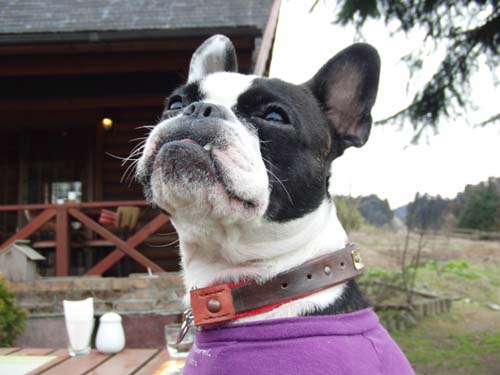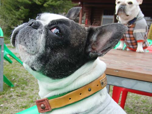 フレンチブルドッグのアンちゃんとノンちゃん が当店の首輪を着けてくれています。