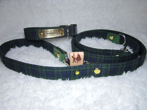 そして、フクスケちゃんの首輪とリード 2センチ幅です。☆ブラックウォッチワンタッチバックル