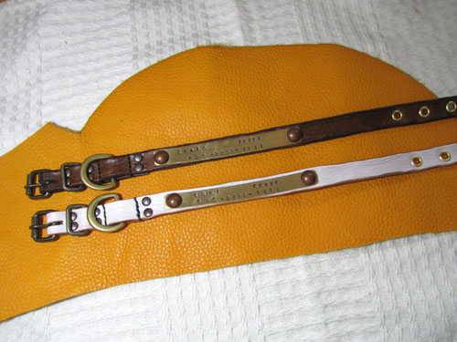 まずは、ミニチュアダックスのクリちゃんとチャコちゃんの首輪♪☆カシメ飾りアンティークホワイト 1.5センチ幅 です。