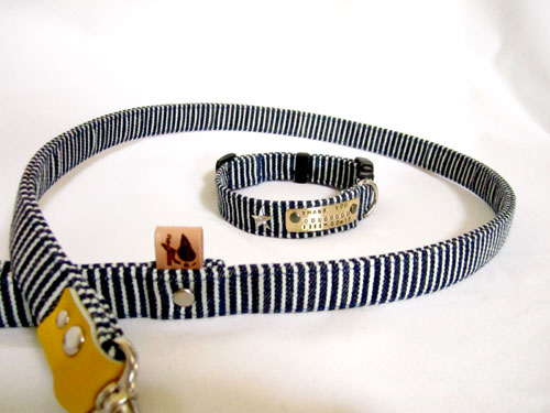 トイプードルのウララちゃんの首輪とリードヒッコリーデニム ハーフチョーク