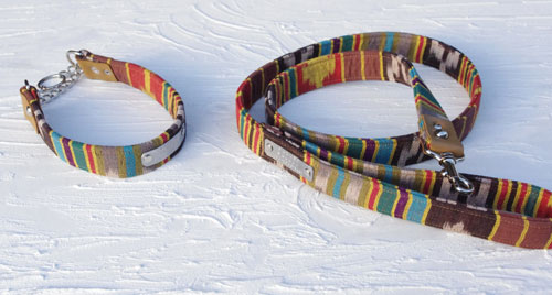 ボストンテリアのがじろうちゃんの首輪とリード☆エスニックボーダー・ハーフチョークのLサイズ