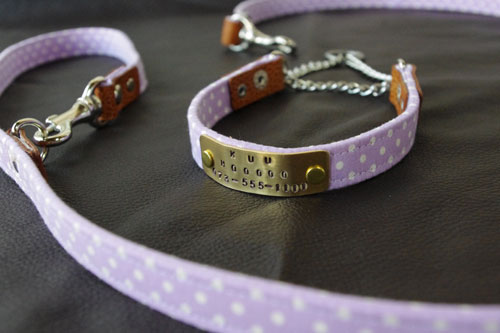 くうちゃんの首輪とリード☆チェック&ドット ハーフチョーク sサイズ 紫ドット