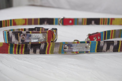 ボストンテリアのヴォルちゃん用☆エスニックボーダー ワンタッチバックル首輪 Mサイズ