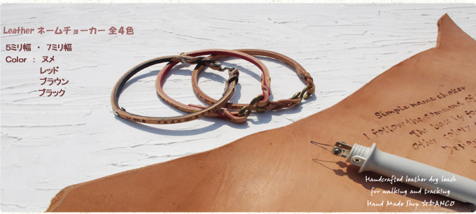 ボストンテリアのマロンちゃんのネームチョーカーですレザーネームチョーカー 7ミリ幅 レッド