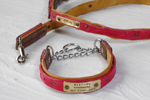 ボストンテリアのこてつちゃん の首輪とリード