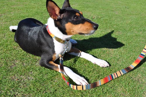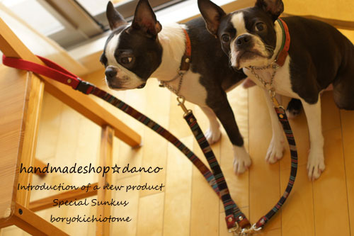 2頭引きのリードを、エスニックボーダーで製作しました。